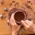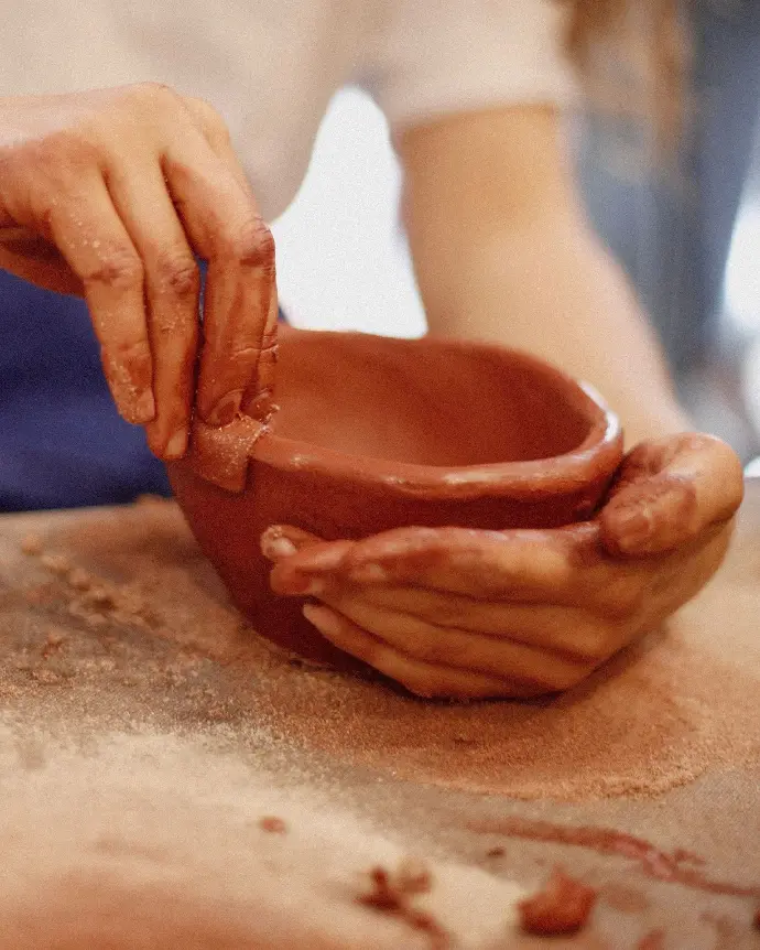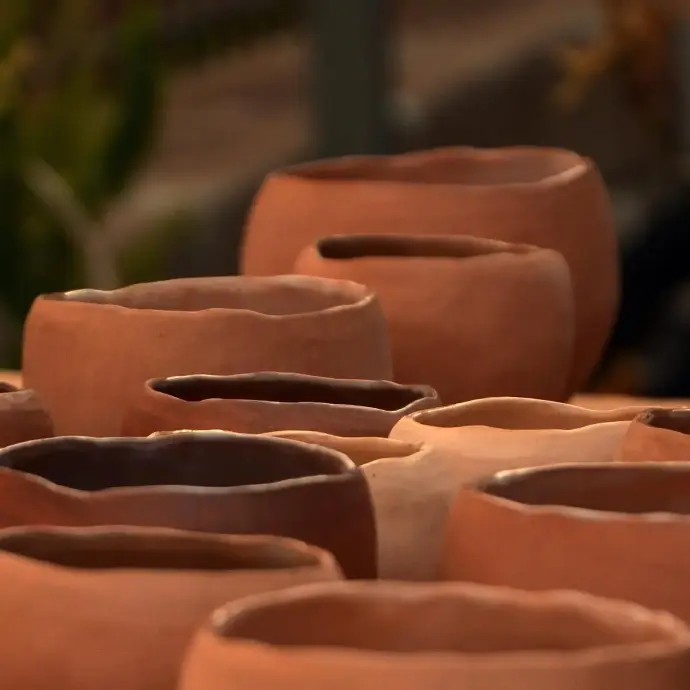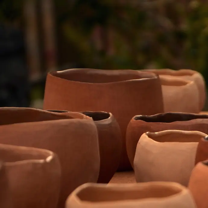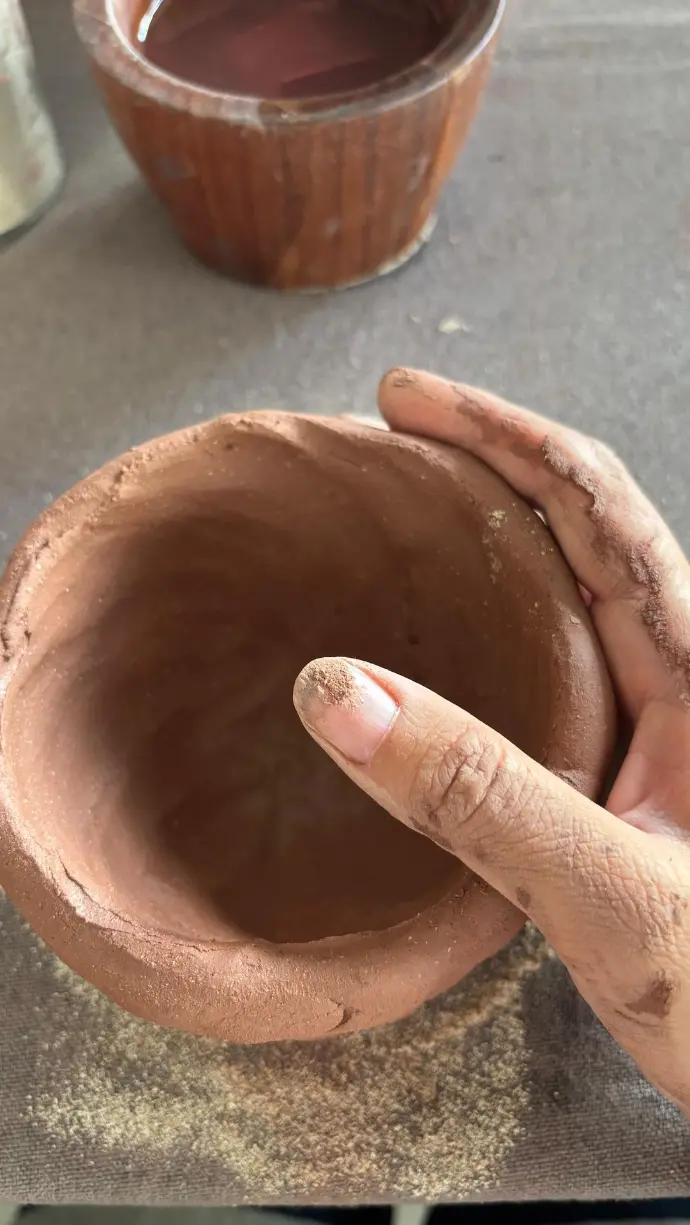 Die Technik wird ohne Drehscheibe, vollständig von Hand geformt und mit einem Stein poliert– ein meditativer, ruhiger Prozess voller Schönheit und Geduld.