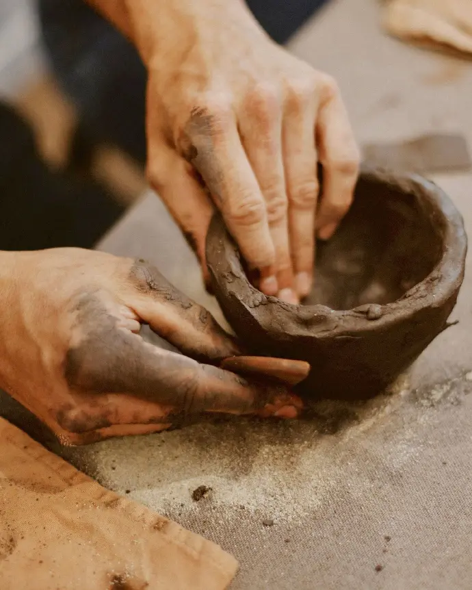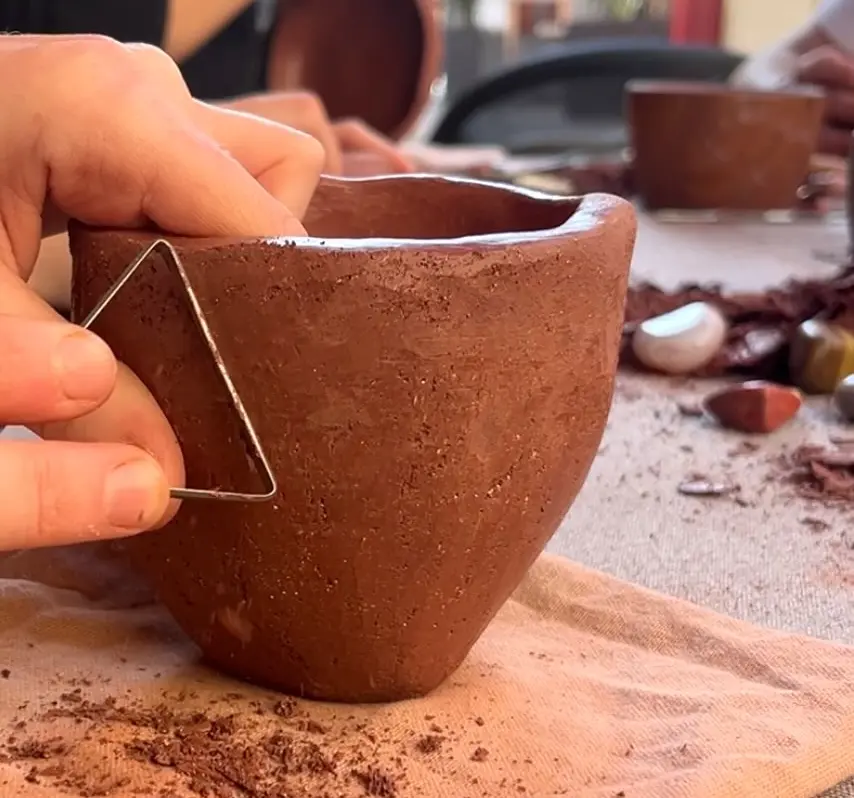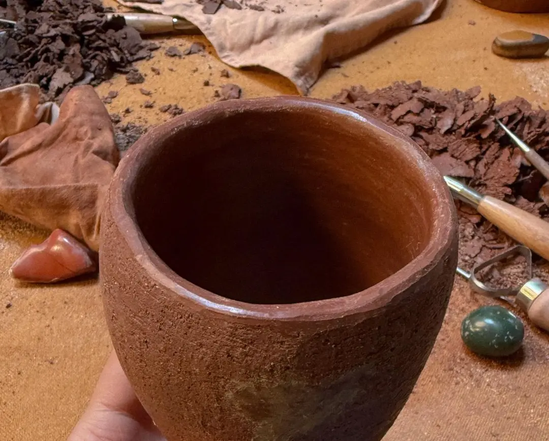 In diese Workshop erleben Sie Schritt für Schritt dieses einzigartige Handwerk – ganz ohne Drehscheibe, ausschliesslich von Hand geformt und mit einem Halbedelstein poliert: